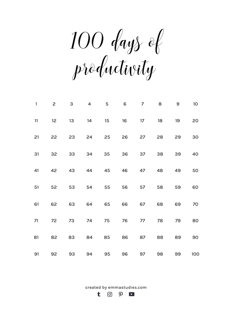 100 days of productivity PDF.pdf We offer blank calendars as. Decide how much you want to save in 100 days and divide that number by 100. Print or download blank calendar templates as.pdf files for free. Stay accounted & motivated with this minimalistic, free printable challenge. Today is your day to just be. Track your progress with our free printable 100 envelope challenge. You save from $1 to $100, and when you're done, you'll have saved a total of $5050. Free challenge tracker printable with 30 & 100 day pages try this free and fun challenge.